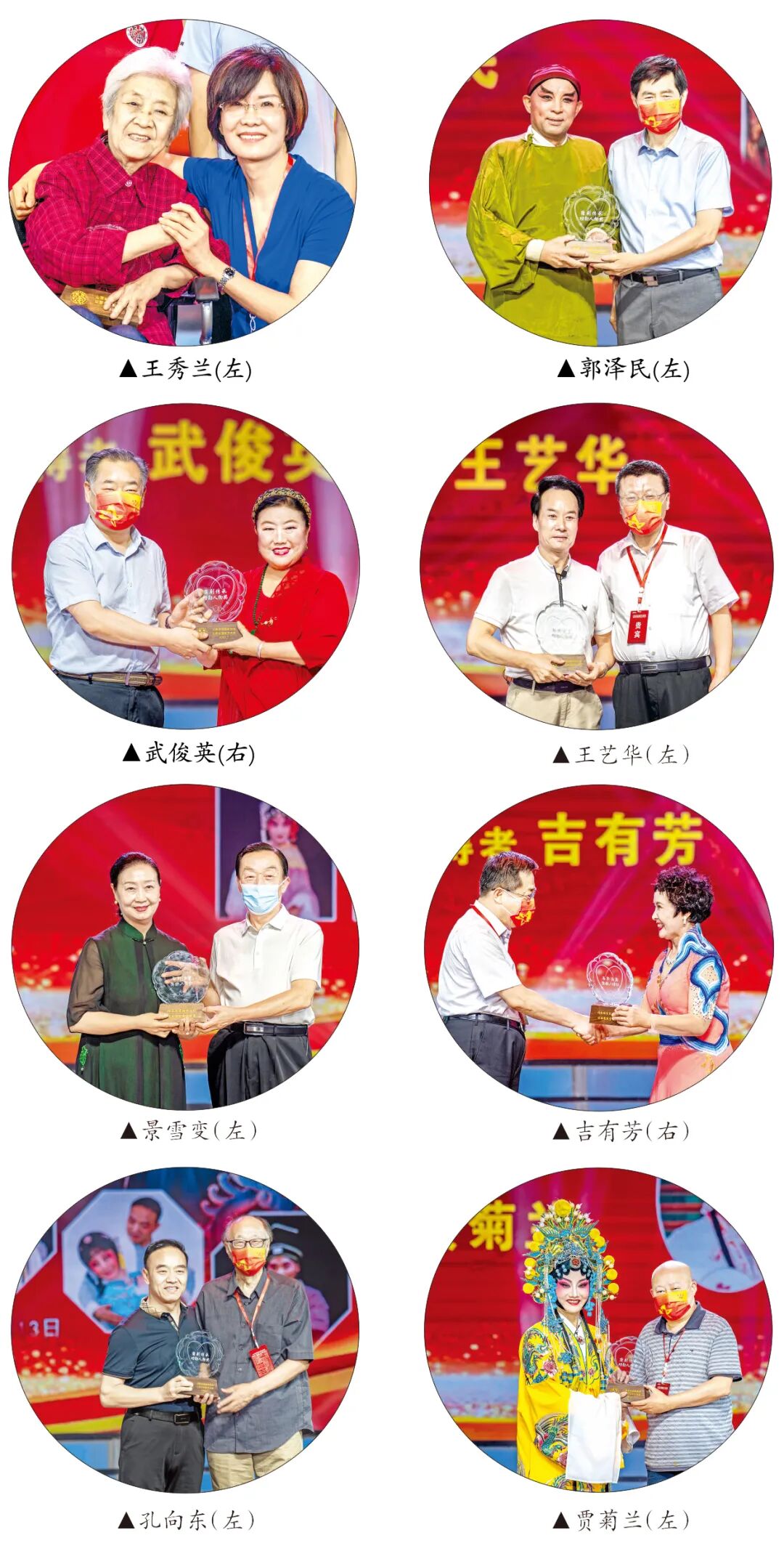 开幕式上,中国文联副主席张平、国防大学原校长裴怀亮、航天英雄景海鹏等发来贺电,祝2022首届蒲剧艺术周圆满成功。季国平等分别为贾菊兰、孔向东、吉有芳、崔彩彩、景雪变、王艺华、武俊英、任跟心、郭泽民等颁发蒲剧艺术传承功勋人物奖;王爱琴为王秀兰颁发蒲剧艺术传承终身成就奖。